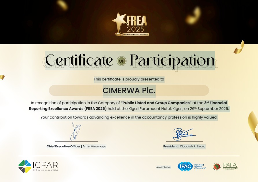 CIMERWA PLC (Rwanda) record strong EBITDA of Rwf 16.56 Billion and Profit After Tax (PAT) of Rwf 1.95 BillionApril 15, 2021